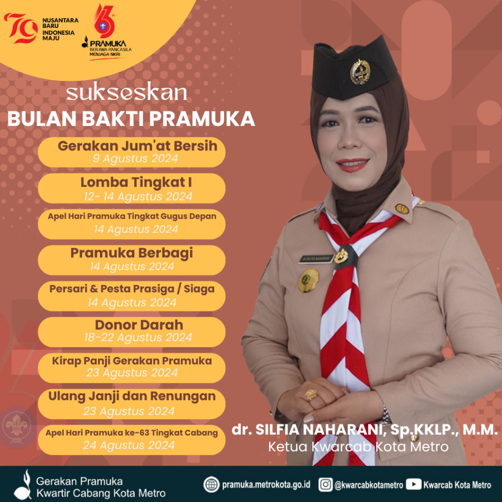 Secara terpisah Ketua Kwartir Cabang Gerakan Pramuka Kota Metro Kak dr. Silfia Naharani, Sp.KKLP., M.M. menghimbau kepada seluruh jajaran Anggota Pramuka Kota Metro untuk menggunakan seragam Pramuka pada tanggal 14 Agustus.